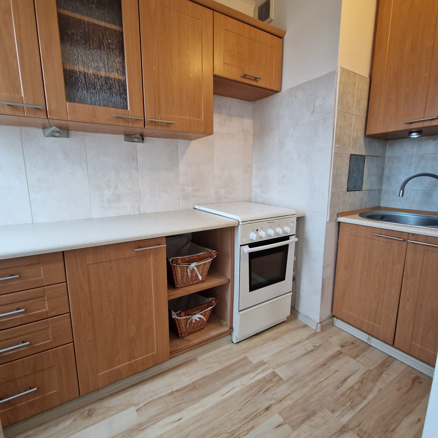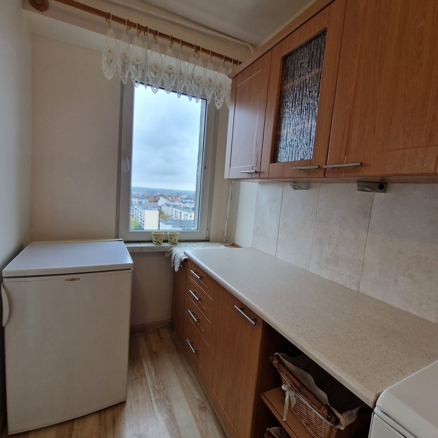 Mieszkanie umeblowane i wyposażone w sprzęty AGD (lodówko-zamrażarka, kuchenka gazowa z piekarnikiem).