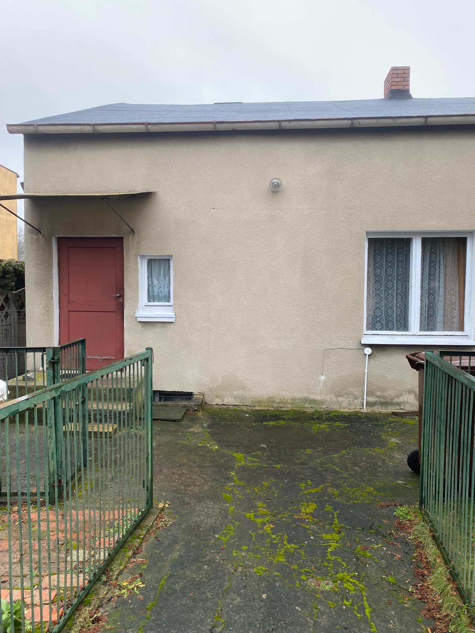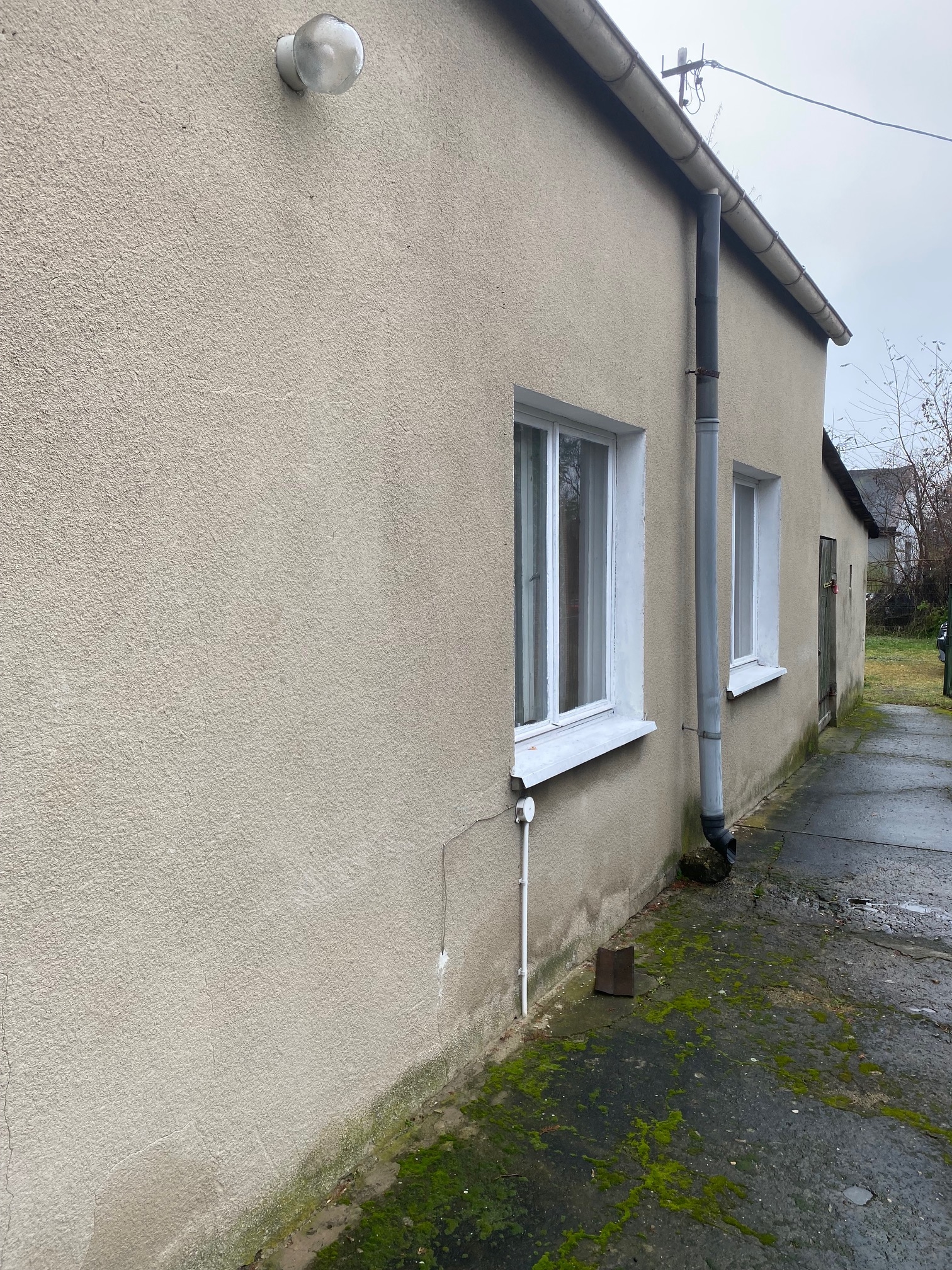Do budynku dostawione jest pomieszczenie gospodarcze o pow. ok. 25 m2 z dachem jednospadowym, pokrytym papą.